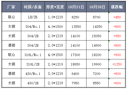 然而,封盤是為了繼續造勢,拉漲則是為了更好地刺激市場。本周,201冷熱軋價格齊頭并進。周初,熱軋已有沖破8000元/噸的勢頭,至周三誠德開盤大漲500元/噸,華樂合金11月指導價開盤大漲600元/噸后,眼看今天誠德又全線封盤了,漲價更是底氣十足。