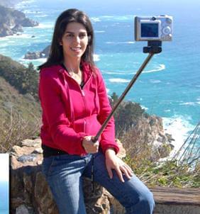 自拍桿自拍桿是近風靡的自拍神器,它能夠在20厘米到120厘米長度間任意伸縮,使用者只需將手機或者傻瓜相機固定在伸縮桿上,通過遙控器就能實現多角度自拍。